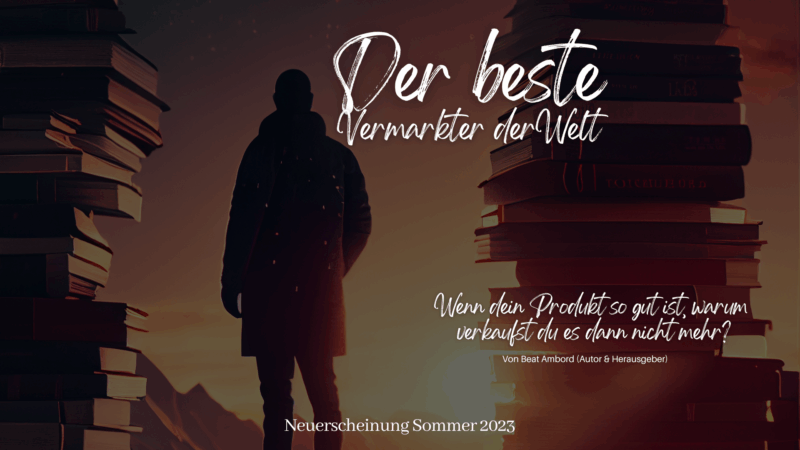 „Freut euch auf den Sommer 2023! Dann erscheint das neue Buch von Beat Ambord, dem renommierten Vermarktungsexperten, über die besten Verkäufer der Welt. In diesem Buch beschreibt Ambord seine 35-jährigen Erfahrungen und Kontakte und gibt praxisnahe Einblicke in erfolgreiche Verkäuferkarrieren. Sei es von 0 Einkommen bis hin zu einem Vermögen von 200 Millionen Euro oder von Begegnungen mit den reichsten Menschen der Welt und ihren Projekten. Lass dich inspirieren und lerne, wie du deine eigene Karriere im Verkauf aufbauen und erfolgreich gestalten kannst. Weitere Informationen zum Buch ‚Der beste Vermarkter der Welt‘ folgen!“
